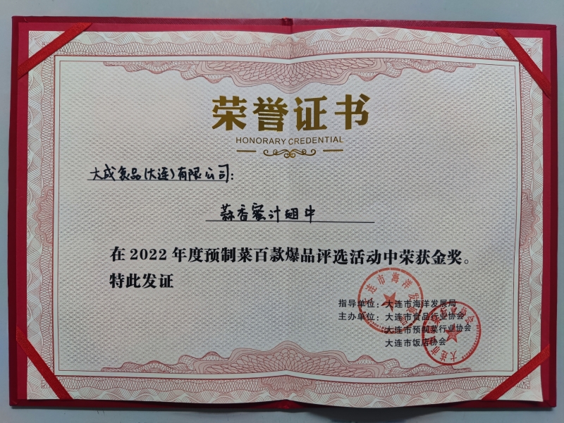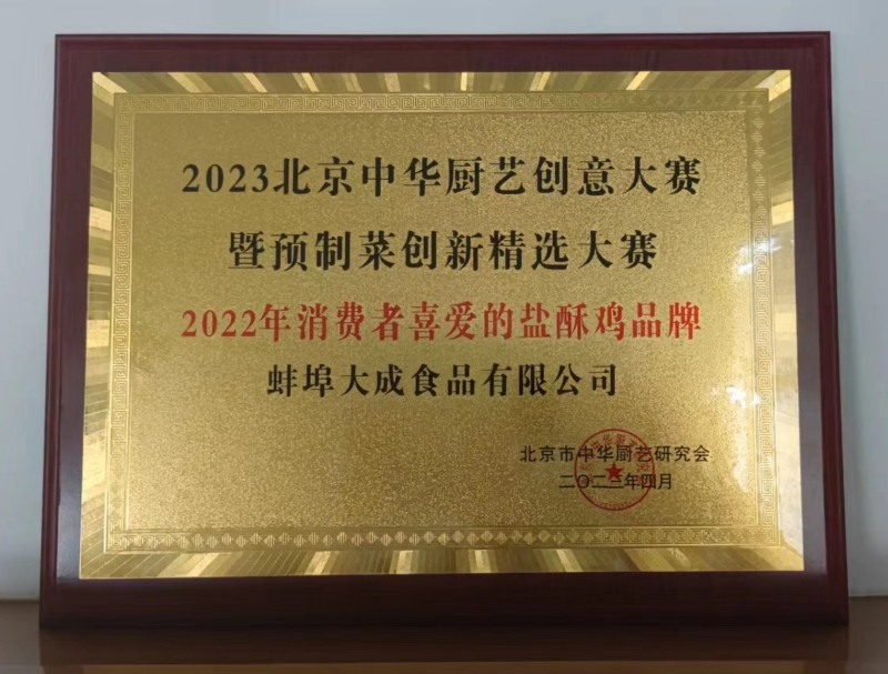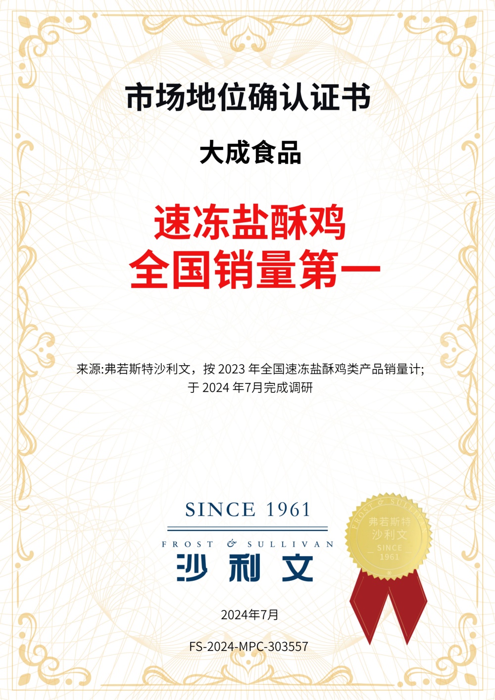 大成食品包装速冻盐酥鸡产品“2023年销量全国第一”