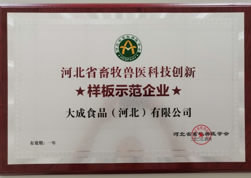 1. 于2021年获得河北省农业产业化省级示范联合体核心龙头企业