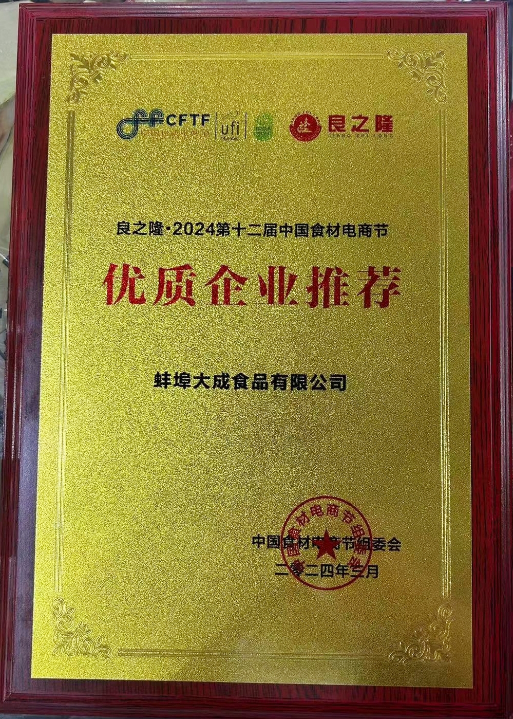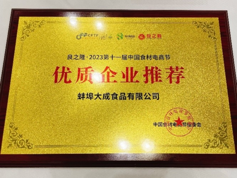 蚌埠大成食品有限公司荣获“优质企业推荐”