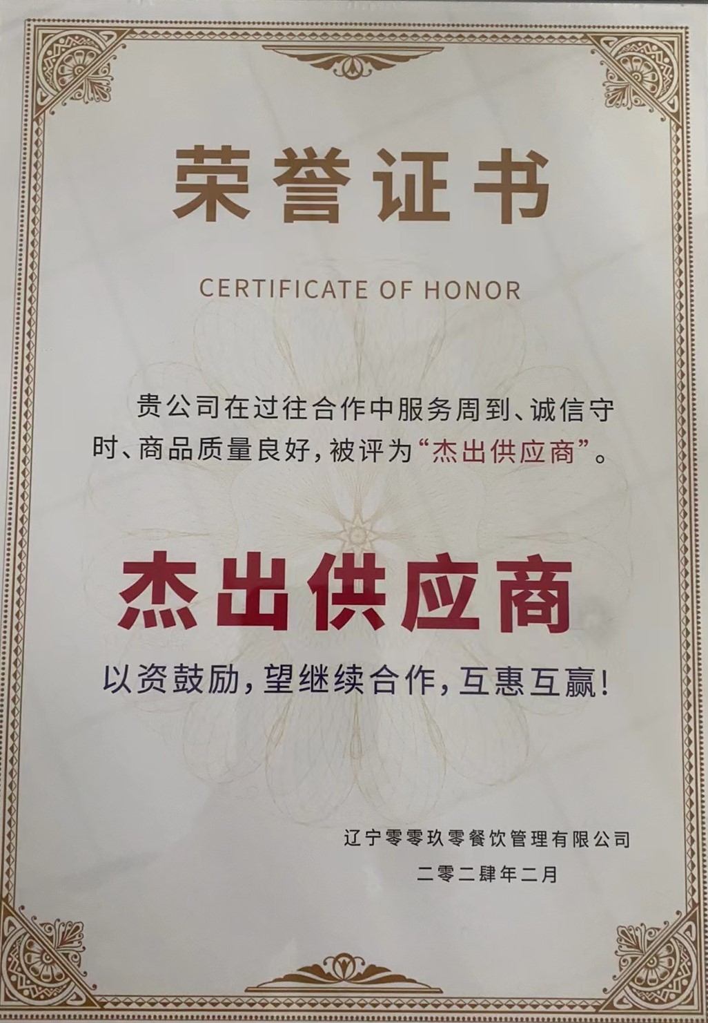 1. 于2009年荣获辽宁省「农业产业化重点龙头企业」、「辽宁省畜产品加工龙头企业二十强」称号