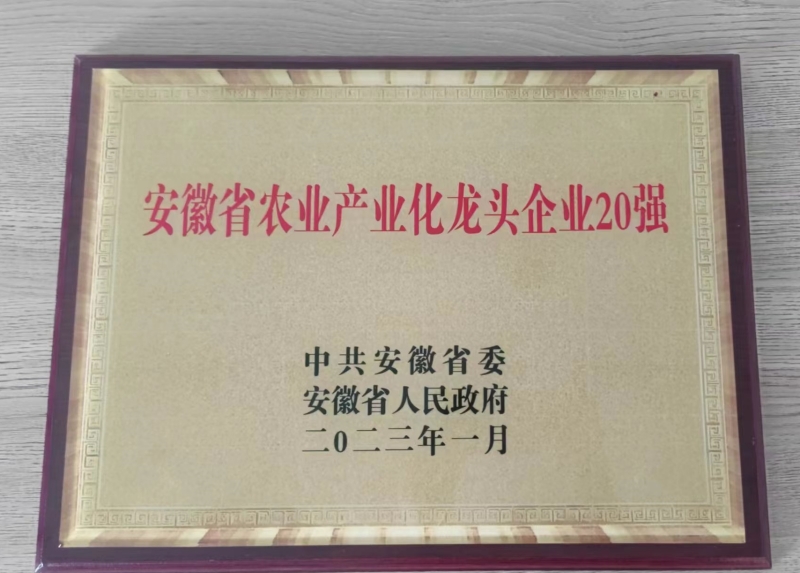 1. 于2015年荣获安徽省「家禽行业十佳企业」称号