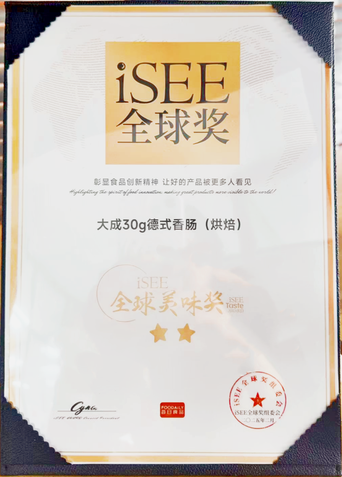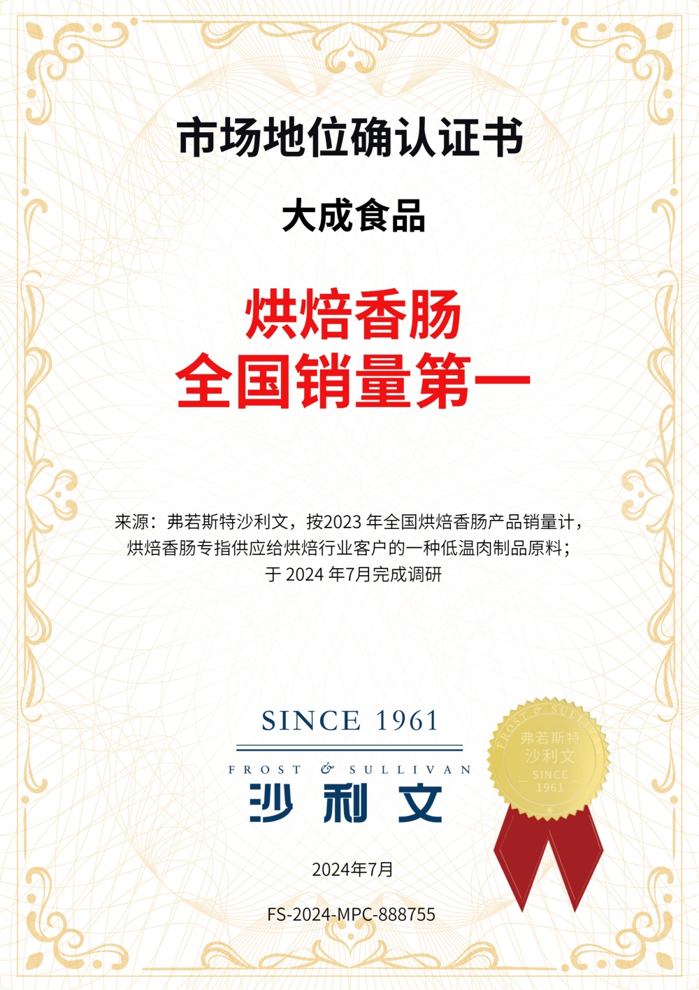 大成食品烘焙用烤肠产品“2023年销量全国第一”