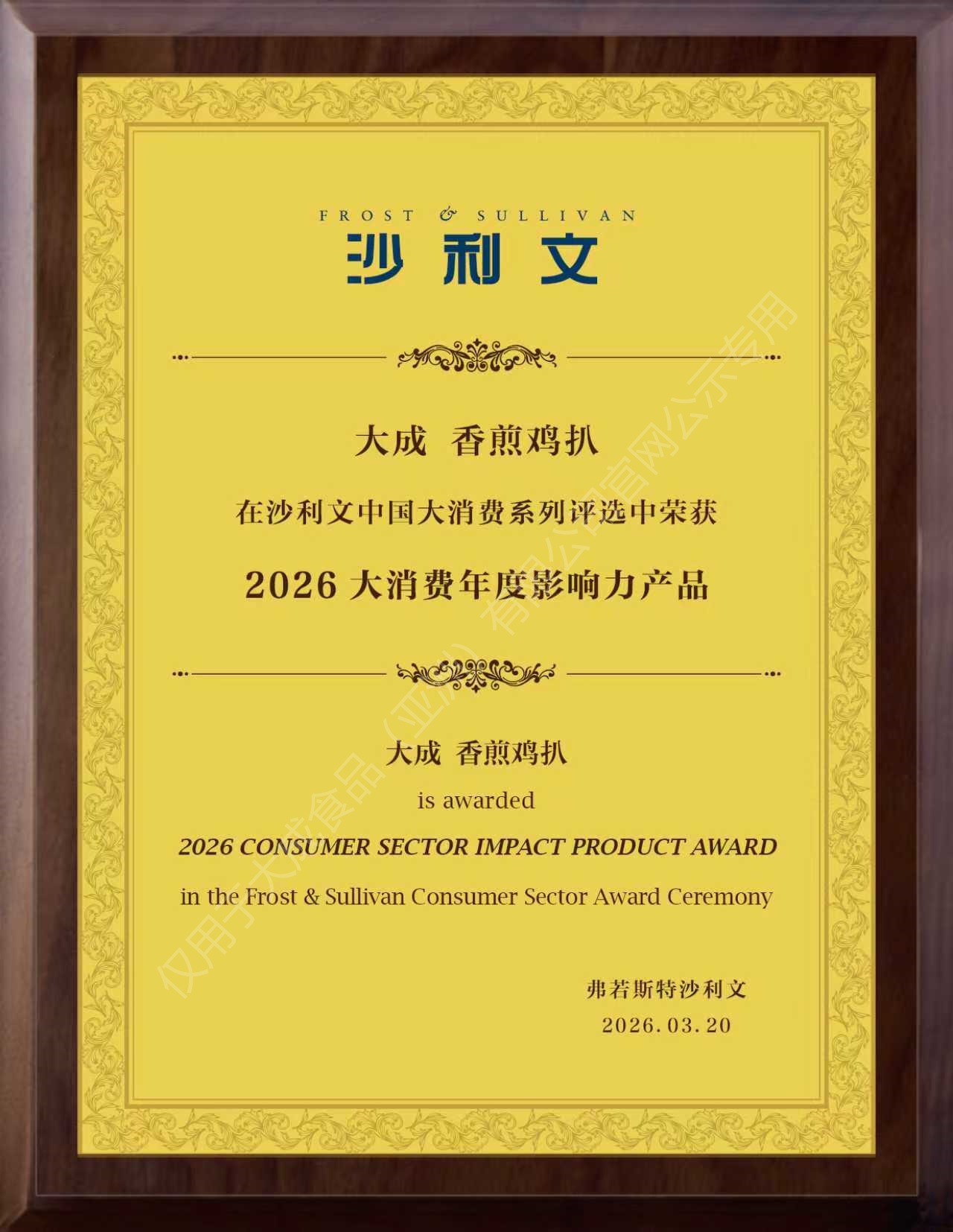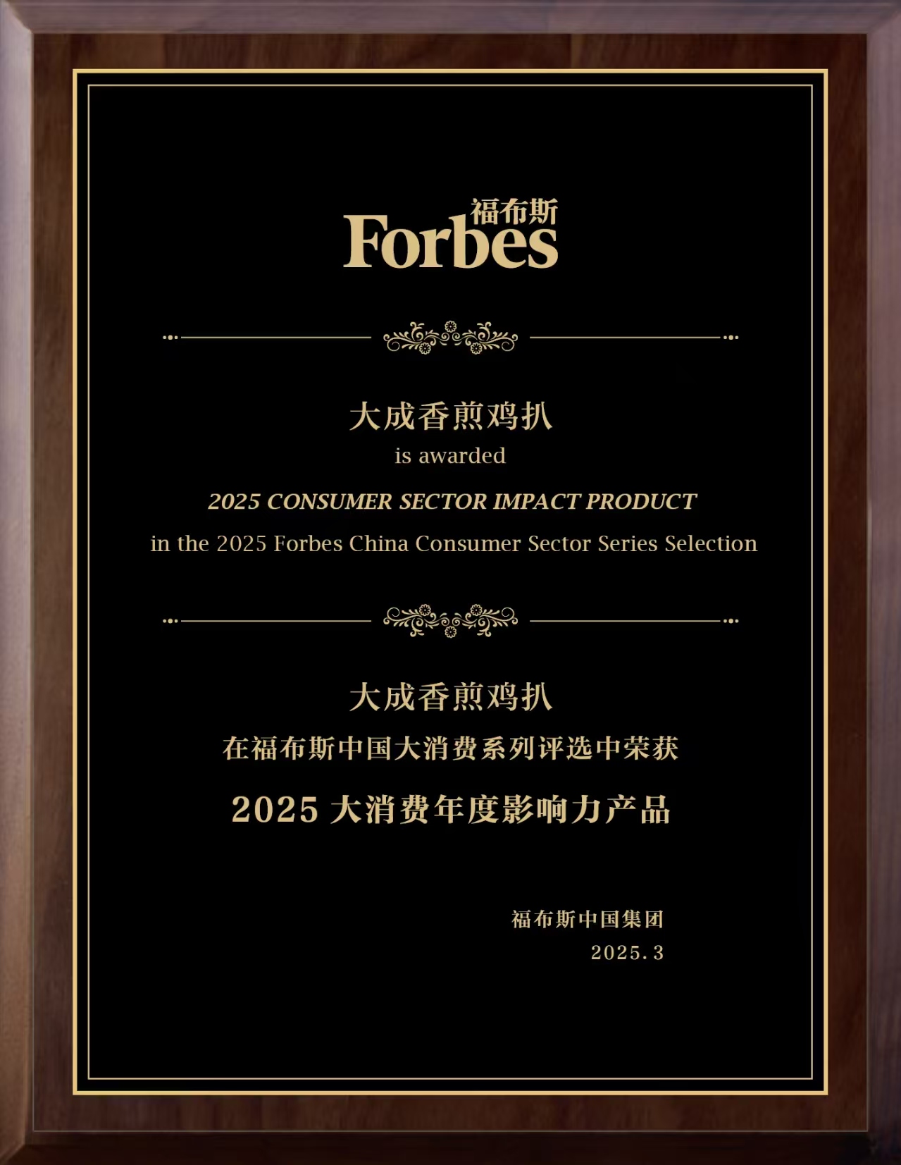 福布斯机构颁发大成盐酥鸡“2024大消费年度影响力产品”