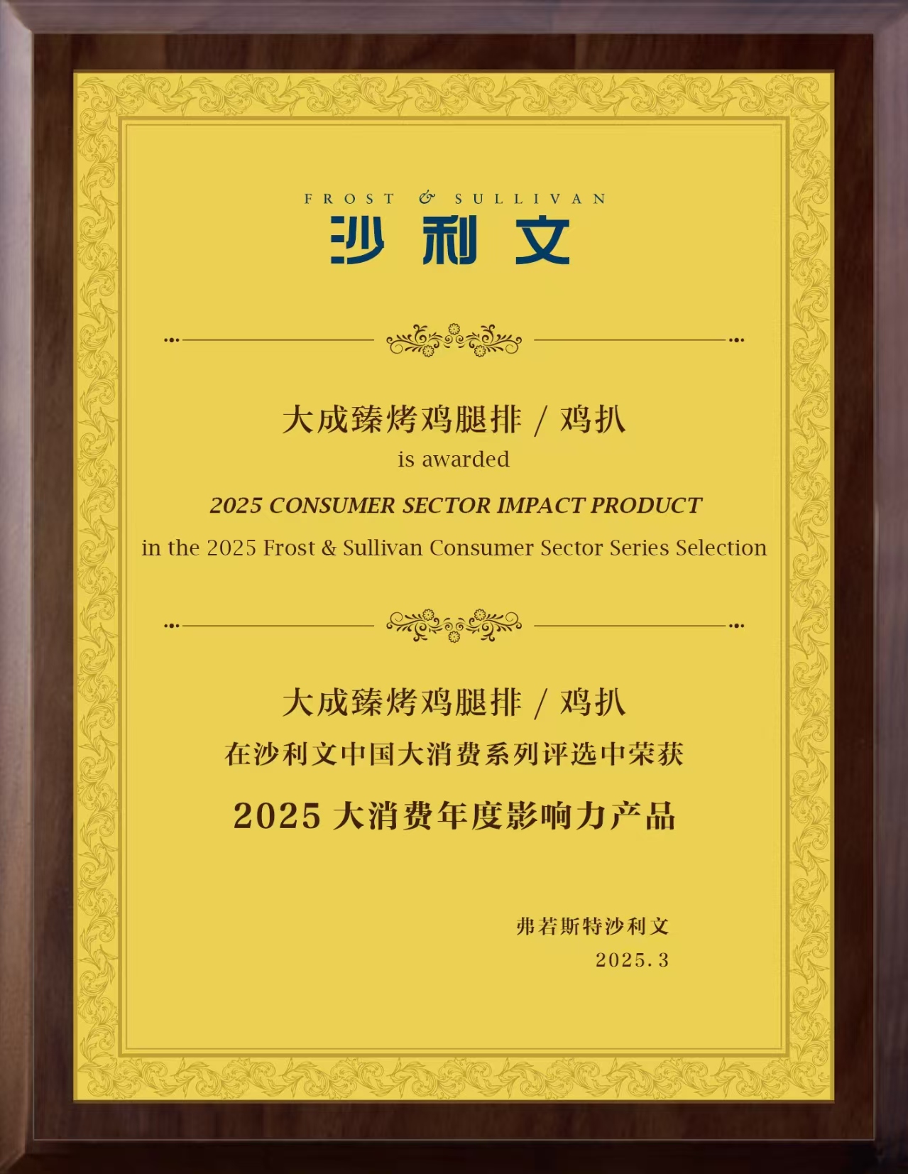 2025沙利文中国大消费年度影响力产品臻烤鸡腿排鸡扒