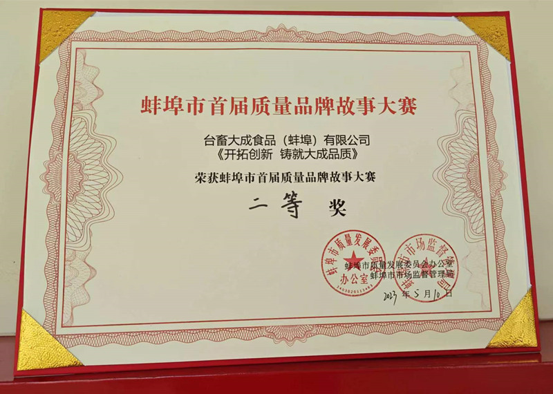 蚌埠市首届质量品牌故事大赛二等奖证书