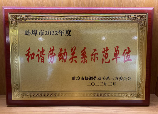 1. 于2012年被蚌埠市评为「蚌埠市认定企业技术中心」