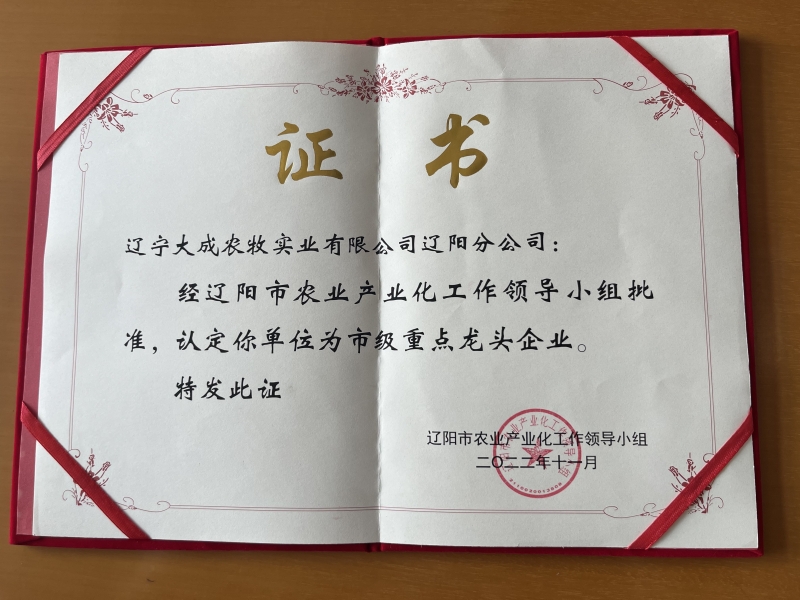 2. 于2021年获得辽宁省农业产业化省级重点龙头企业