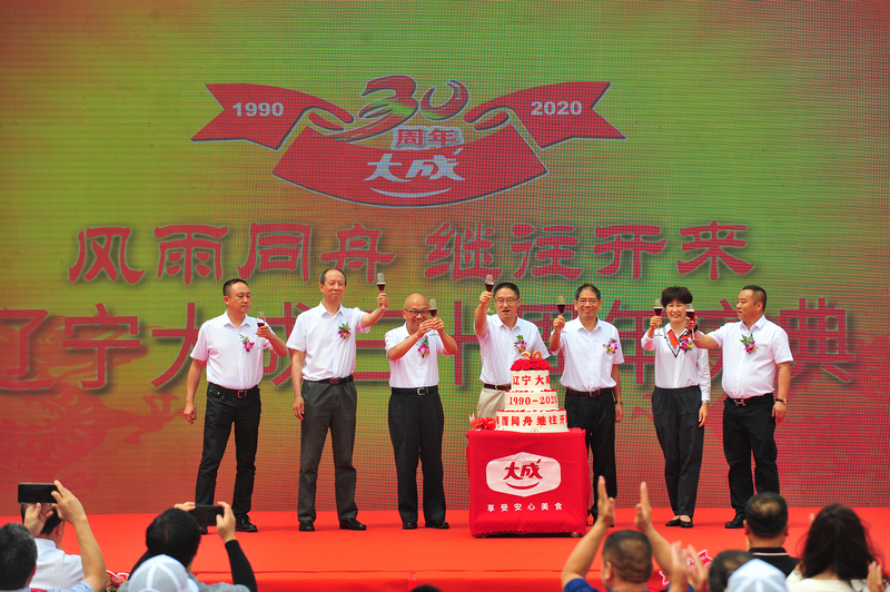 2020年7月17日-18日,辽宁大成建厂三十周年盛典在沈阳召开,大成食品(亚洲)有限公司尉安宁主席,孙德宏执行长以及当地政要、行业协会、金融机构、供应商、经销商、直营客户、各地区利润中心主管、荣退员工等五百余嘉宾参加本次盛会。庆典主题为感恩、奋进、承诺三个篇章,庆典活动为美食广场、参观工厂、生日会,嘉宾做客大成直播间等内容。忆往昔感恩感谢、看今朝奋进拼搏、望未来承诺担当!