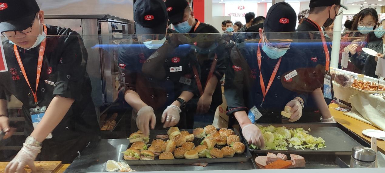 为邀请更多客户亲身体验大成特色产品,大成烘焙师每天上午和下午分别组织了众多现场品鉴活动。不仅有新产品的品尝(烘焙师现场烤制,请客户品鉴原汁原味的产品特色),更有汉堡、轻食三明治、比萨、面包等多种应用品鉴,全面提升客户体验。牛转钱坤棒、素燃牛堡、芝士鸡排三明治、车达奶酪酱等轮番上场试吃品鉴。好看又好吃的产品与多款应用品鉴,加上大成烘焙师专业热情服务,参与品鉴的观众越来越多,围绕制作间竟然排起长队。大成邀约的重点客户,则通过“绿色通道”,很快品鉴到指定产品,现场即可高效沟通。大成周到细致的服务,客户称赞专业高效。