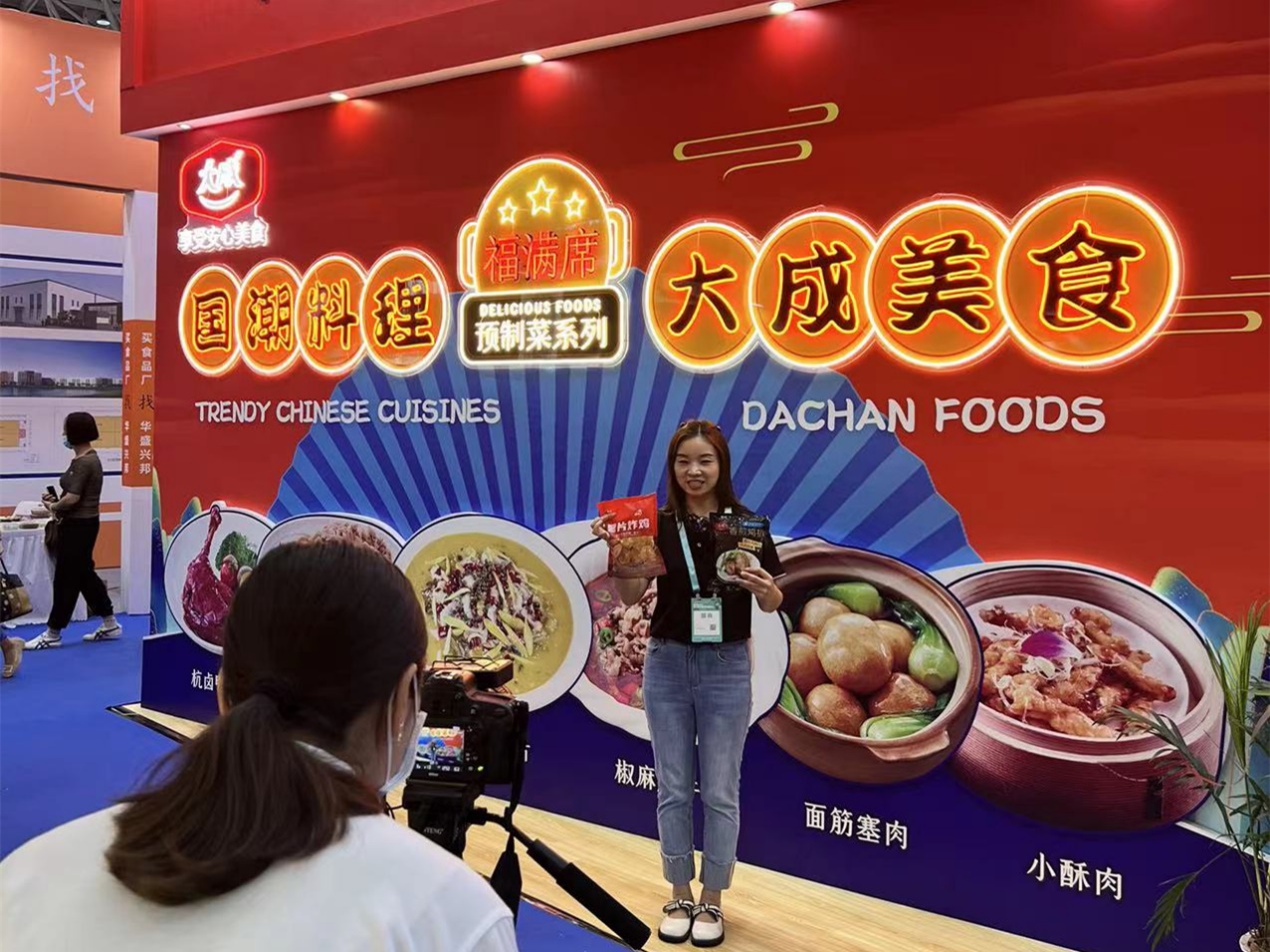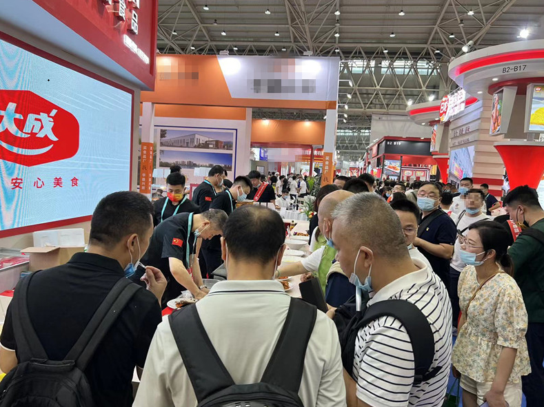 作为组委会授权的优质食材展商,大成食品此次携福满席系列新品参展,精美的产品菜式,新颖的展台设计,一经亮相便成为展会焦点,观众络绎不绝,品尝菜式、咨询产品,更有打卡拍照,热闹非凡。