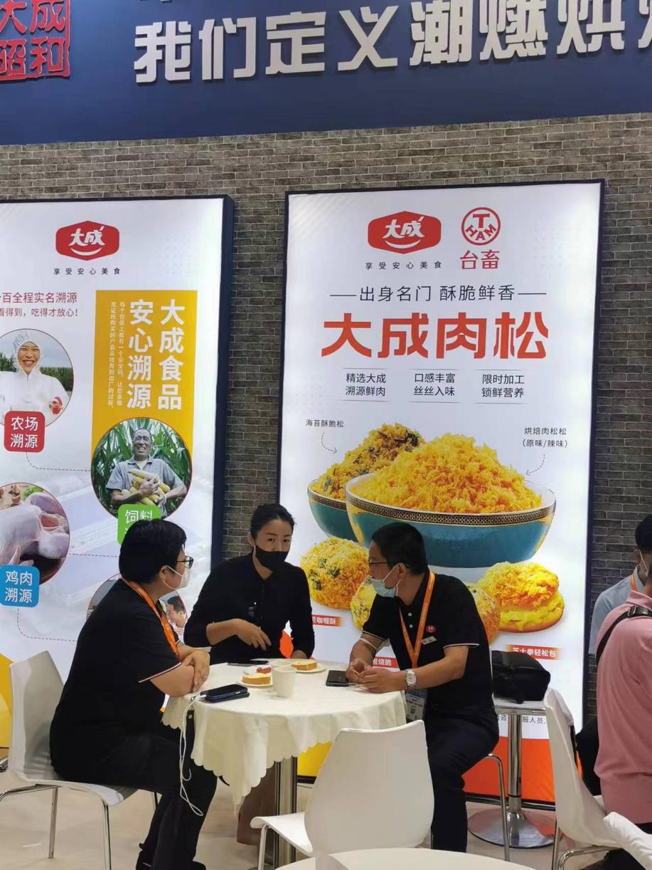 首次亮相的新品,一直是客户关注的焦点,像惠顿牛排、蜜汁鸡腿等新中式网红产品,美式脆皮肠、日式照烧腿排、馅料系列等新烘焙肉品、肉松系列的产品,询问度相当高。本次展会的新产品推广卓有成效,众多客户前来咨询了解,互动品尝,好评不断。