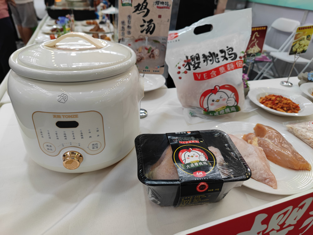 大成食品(大连)有限公司位于6展馆B22展位,产品展示区包含鸡肉类全渠道产品,主推全熟系列新产品之“宫保鸡肉串”、“韩式辣白菜猪肉丸”、“火焰大胸鸡肉串”,匠心研发,突出风味差异化;预制菜产品主打免焯、免洗、免切的易厨系列以及酱汁风味极佳的酱当道系列,都是快速出餐的不二之选;樱桃鸡产品用樱桃鸡现场加工元气鸡汤,吸引众多观众驻足品尝。同时,整个展示区产品也受到现场品鉴官的一致好评。