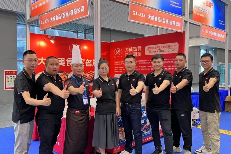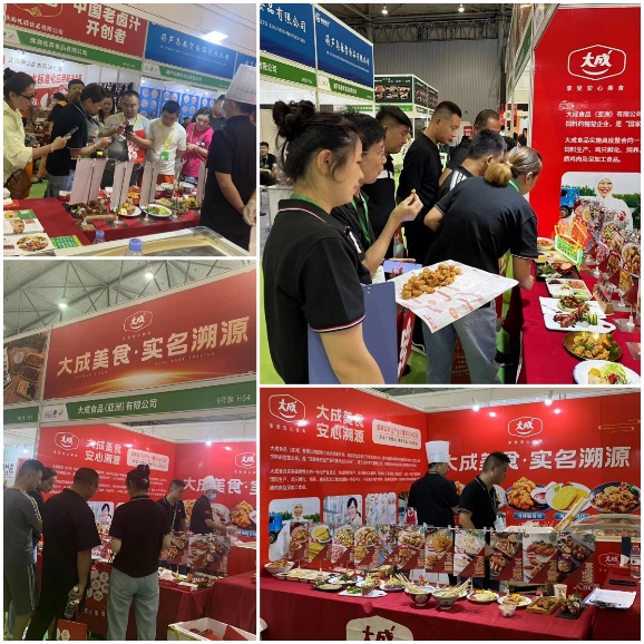 在川·粤·浙三地的展会现场,美食的香气吸引了众多观众驻足观赏并拍照留念。销售团队身着统一的工服,微笑着向观众介绍大成食品的产品特色和独特的制作工艺,解析菜品的原料来源和营养价值,让观众对大成食品的品质和口感有更深的理解,同时也激发了他们与大成食品未来合作的期待。
