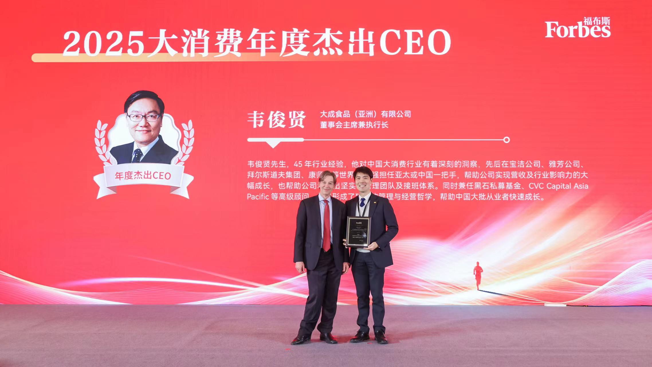 大成食品董事会主席兼执行长韦俊贤先生,荣获2025Forbes福布斯中国大消费年度杰出CEO奖