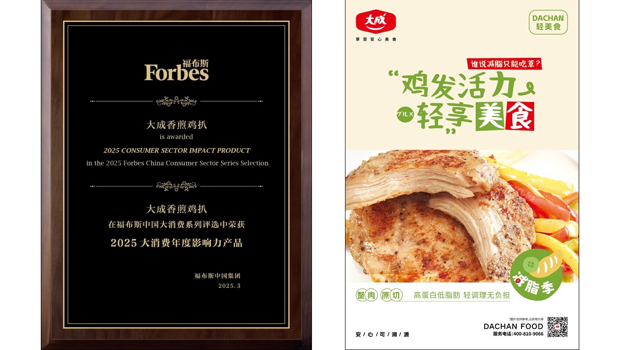 大成食品 <香煎鸡扒> 荣获2025 Forbes福布斯中国大消费年度影响力产品