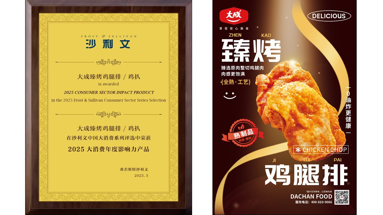大成食品 <臻烤鸡腿排/鸡扒> 荣获2025沙利文中国大消费年度影响力产品