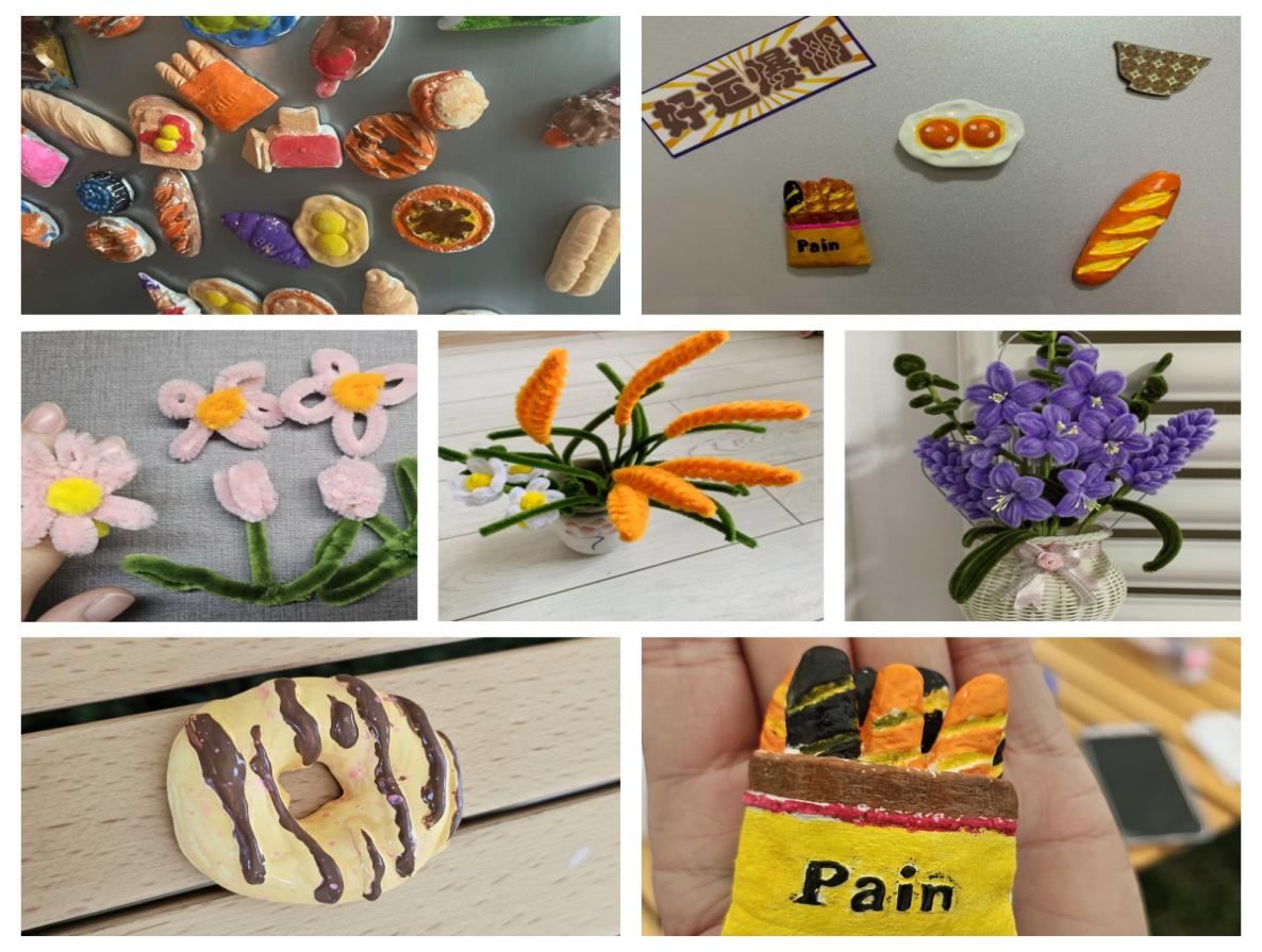大家的创意DIY作品:手工冰箱贴与扭扭棒花束制作成果分享