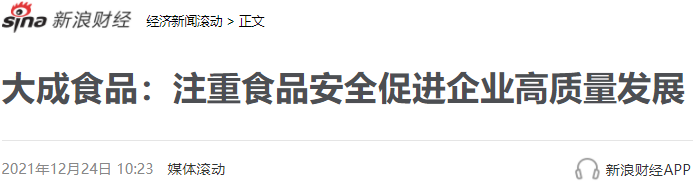 阅读原文:大成食品:注重食品安全促进企业高质量发展|安徽省_新浪财经_新浪网 (sina.com.cn)