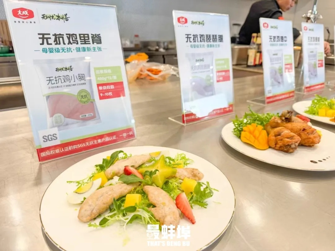 大成食品相关负责人阐述了“无忧本膳”无抗系列产品的深层含义,其中“无忧”代表“无担忧、无顾虑”,无抗生素产品认证,确保从养殖到屠宰全程可溯源,让消费者无忧无虑地享用美味,无需担心健康风险。“本膳”代表“本源、天然”,自然、无添加的产品,还原鸡肉本真营养、本质安全,本真配方,童食无忧。