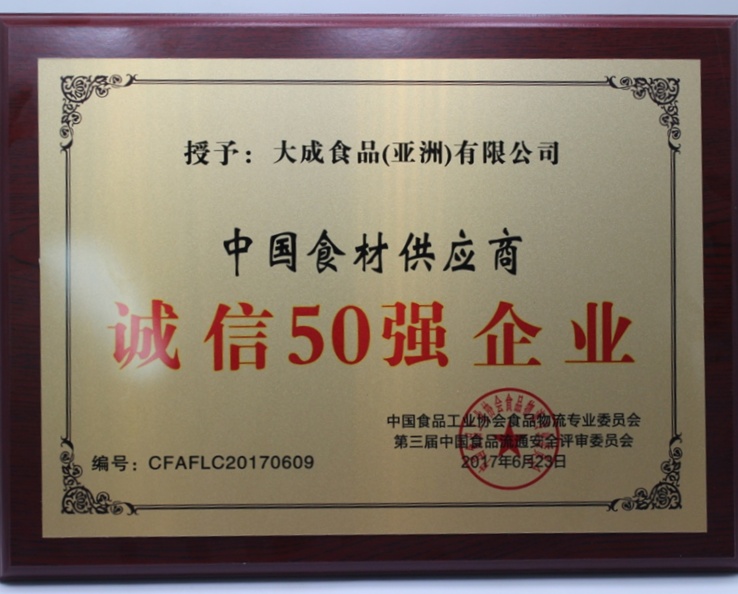 中國食材供應商誠信50強企業