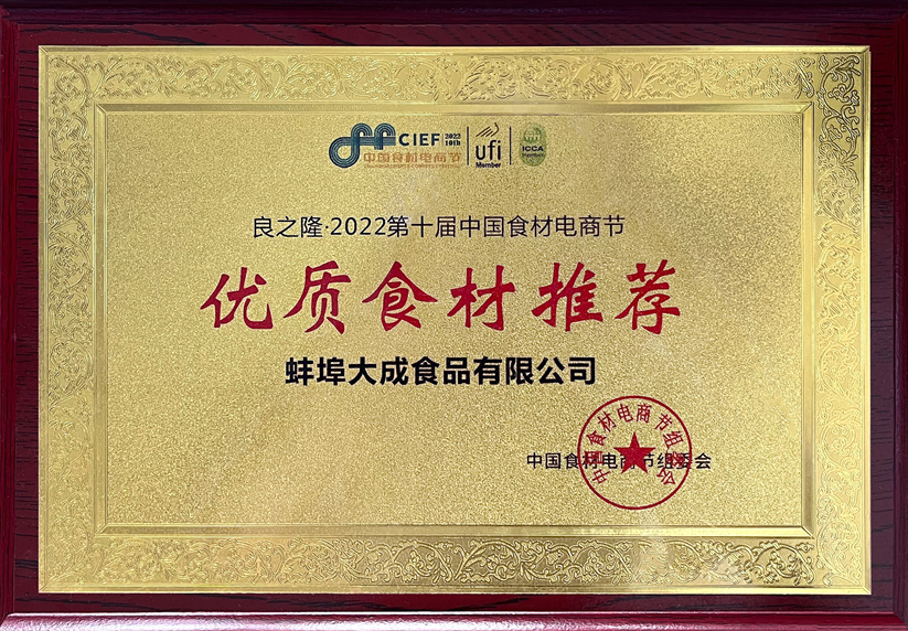 蚌埠大成食品有限公司榮獲“優質企業推薦”
