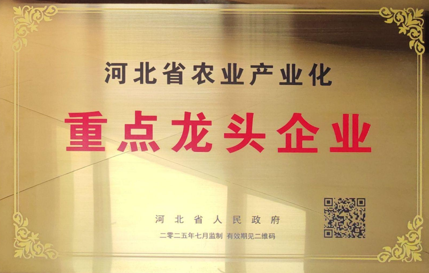 1. 於2021年獲得河北省農業產業化省級示範聯合體核心龍頭企業