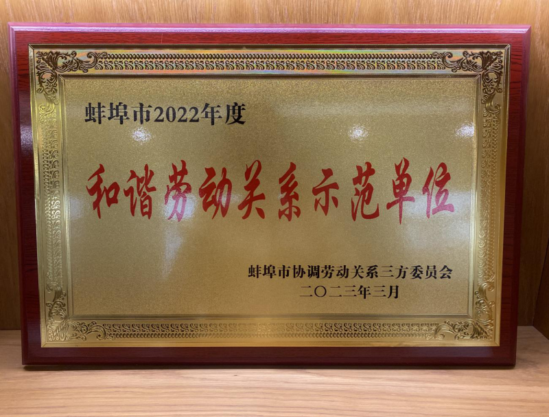 蚌埠市2022年度和諧勞動關係示範單位