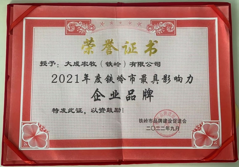 1. 於2011年榮獲鐵嶺市「農業產業化“十強龍頭企業”」稱號