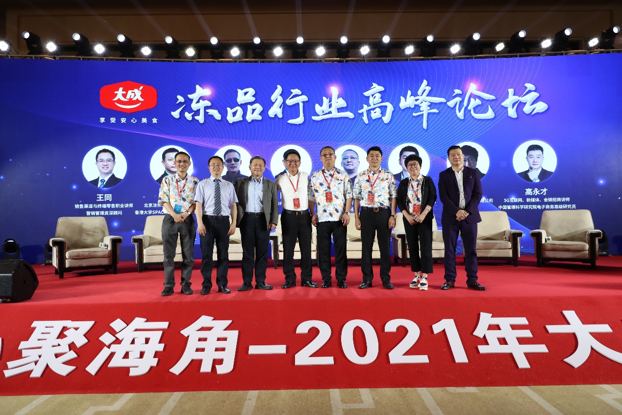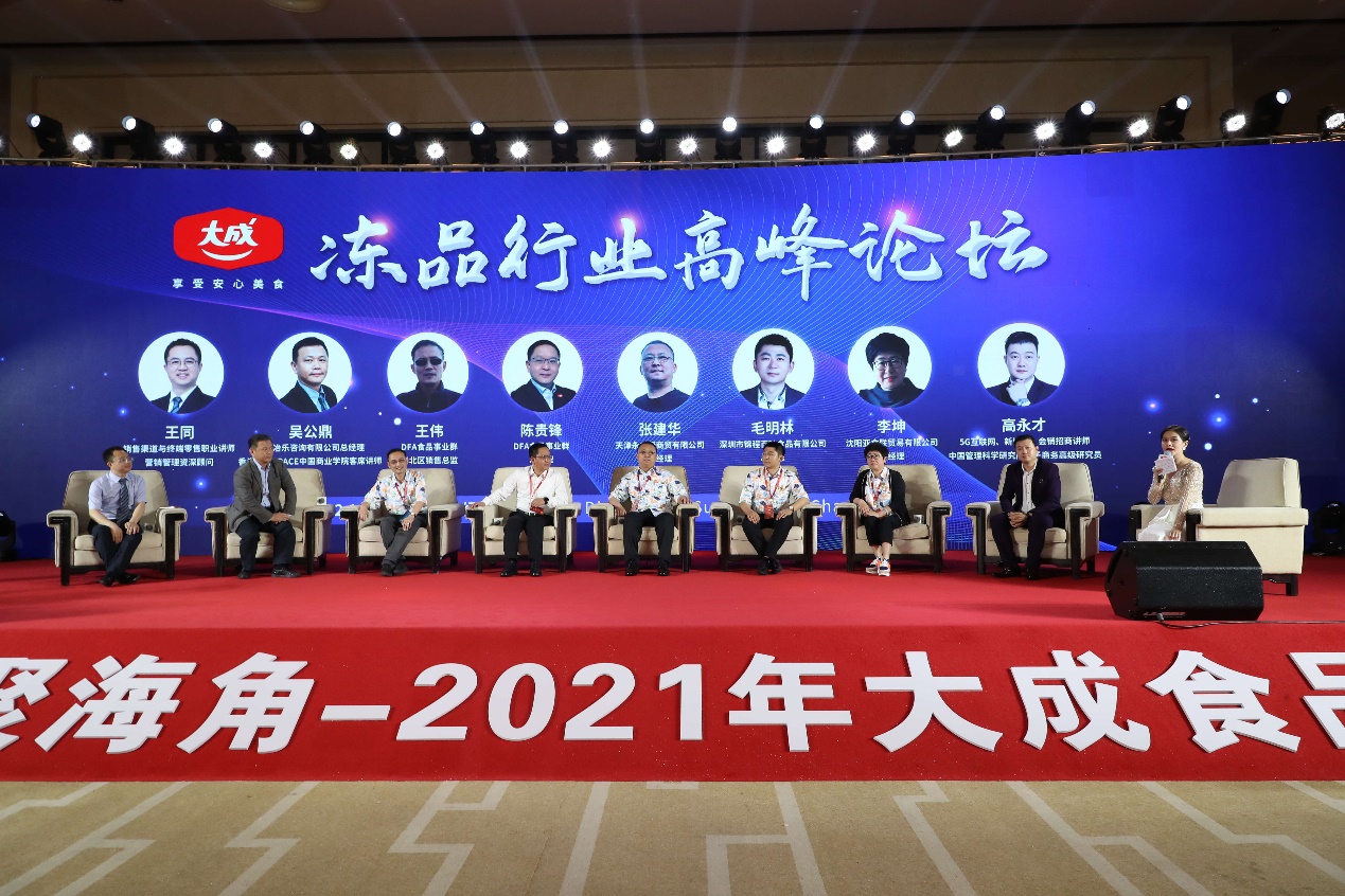 在大咖主題分享後,是本次峰會的又一亮點“凍品行業高峰論壇”,主持人邀請諸位大咖、優秀經銷商代表以及大成集團代表共同參加,圍繞新零售模式爲凍品行業帶來的機會與挑戰,大成集團的差异化競爭優勢,以及新品營銷策略等三個論題展開探討。通過主持人的互動提問,諸位嘉賓分別從不同角度闡述各自觀點,經銷商代表更是通過與大成合作的具體成功案例分享,與現場夥伴達成一次又一次的共鳴,將現場氣氛推向高潮,全場夥伴起立爲嘉賓鼓掌喝彩。