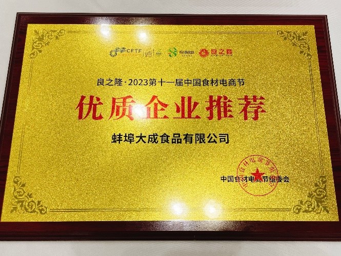 圖:大成食品獲得組委會官方“優質企業推薦”