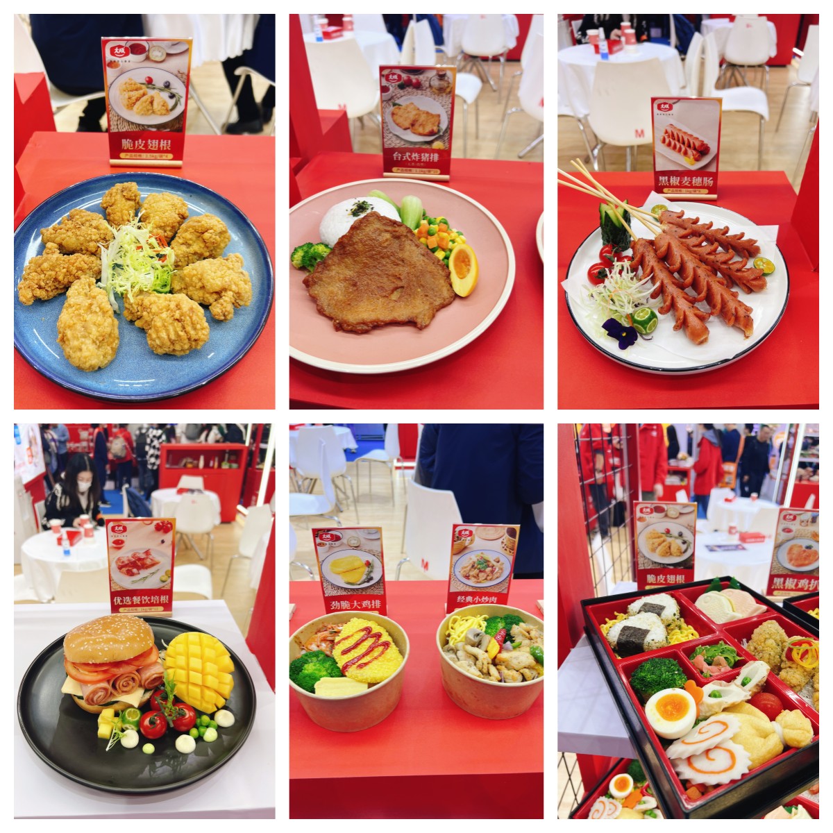 本次食品事業群展出近20款新品,例如:哢滋奇妙棒、黑椒麥穗腸、肉多多雞排、勁脆大雞排、嚕嚕豬形堡、田園雞排、臺式炸豬排、小酥肉、脆皮翅根、日式照燒脆骨丸串、瑞典式肉丸串、BBQ燒烤雞肉串、手撕雞絲、優選餐飲培根、烘焙肉鬆等,還有家庭裝產品搭配線下會員店賣場陳列佈置,吸引了眾多民眾圍觀諮詢。