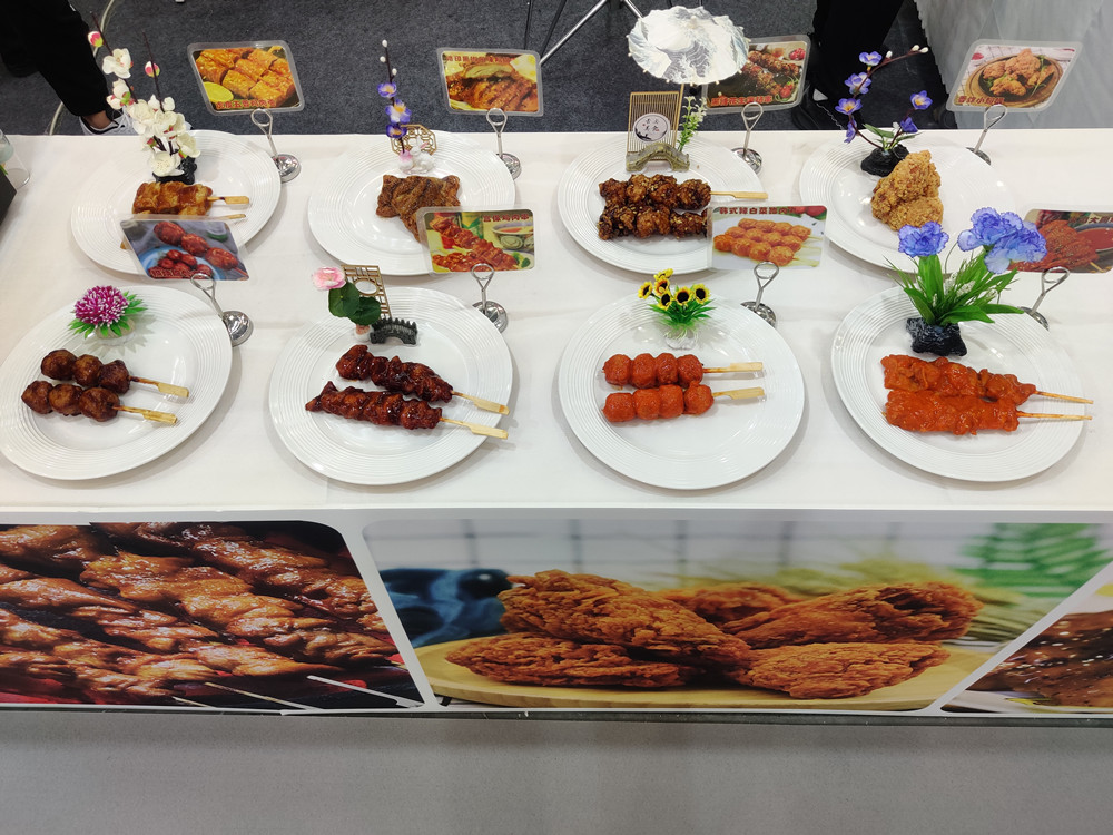 大成食品(大連)有限公司位於6展館B22展位元,產品展示區包含雞肉類全管道產品,主推全熟系列新產品之“宮保雞肉串”、“韓式辣白菜豬肉丸”、“火焰大胸雞肉串”,匠心研發,突出風味差異化;預製菜產品主打免焯、免洗、免切的易廚系列以及醬汁風味極佳的醬當道系列,都是快速出餐的不二之選;櫻桃雞產品用櫻桃雞現場加工元氣雞湯,吸引眾多觀眾駐足品嘗。同時,整個展示區產品也受到現場品鑒官的一致好評。