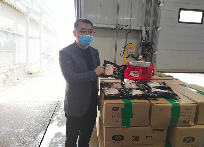 他還把回報社會奉獻愛心,作為一直以來堅守的社會情懷。除了落實疫情期間的保供任務,大成還帶著公司5萬元的產品,慰問了經濟技術開發區的1個街道和7個社區,向奮戰在一線的抗疫工作者送去一份關愛,也彰顯政企風雨同舟、攜手抗疫的凝聚力。